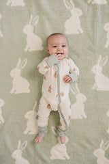 Our Bunny Plush Blankets are made for cuddles at every age!these ultra-soft plush blankets feature an adorable light green bunny print that’s the perfect blend of neutral and timeless. Perfect for naps, bedtime, stroller rides, or snuggling on the couch, they’re cozy, comforting, and gentle on skin.
