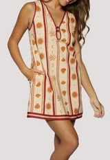A summery, vacation-ready print enlivens this stretch-kissed cotton minidress designed in a breezy silhouette with side-seam pockets.