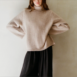 - Wrap yourself in cozy luxury with the Edina Cashmere Turtleneck. This taupe sweater blends the softness of wool with the plush warmth of cashmere, making chilly days a chance to show off your snug style. Its playful turtleneck design adds a dash of flair while keeping you super comfortable all day long. Perfect for layering or wearing solo, it’s your new go-to for effortless warmth with a fun twist.