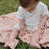 Made with little hands in mind, our flower press toy encourages sensory exploration and the development of fine motor skills with its simple design and soft colors. Featuring food grade silicone and a BPA-free plastic frame, children will tap into learning as they press the bubbles and hear a gentle pop. This toy is inspired by nature and holds the attention of babies and older kids with endless opportunities for play