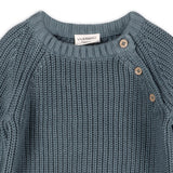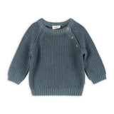 • 100% organic cotton chunky sweater knit baby pullover with buttons.