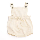 - 100% organic cotton sweater knit romper, cashmere like softness. Coconut shell buttons.
